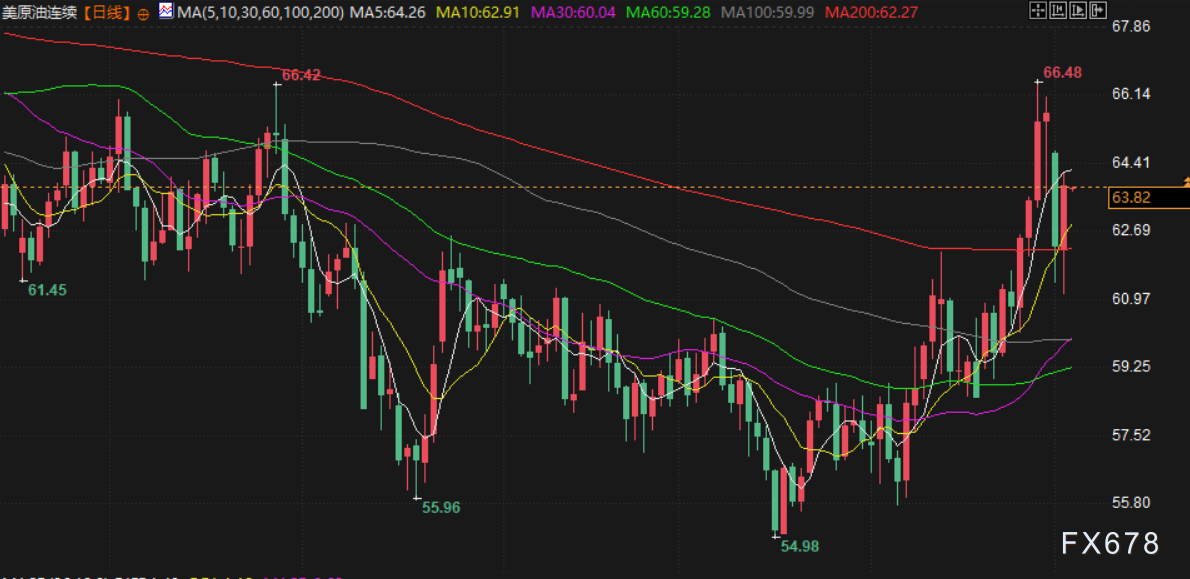 截至收盘,布伦特原油期货上涨1.6%,结算于每桶67.33美元;美原油期货上涨2.52%,结算于每桶64.21美元。此次上涨部分收复了周一因特朗普称美伊进行“严肃对话”而导致的逾4%的跌幅。